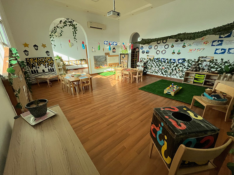 • Our spacious Nursery and FS1 classrooms are carefully designed as flexible learning spaces. They are equipped with age-appropriate materials and resources that encourage exploration, creativity, and critical thinking. The layout supports children in making choices and developing independence.