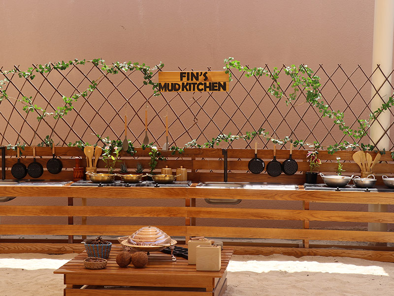 1. FIN Mud kitchen, equipped with water trays and open-ended resources.