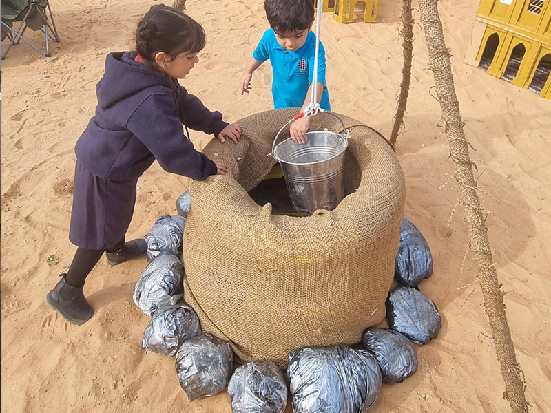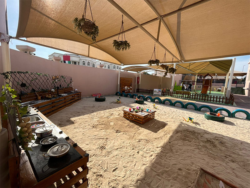 8. A unique ‘Desert camp area’ that offers sensory play, and role-play opportunities with tents, camels, a well, a campfire, etc. It’s an area children can relate to, especially as many of them enjoy desert camping trips with family over the weekend.